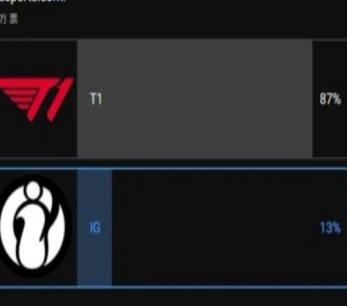 LoL官方发布预测投票,在4.4万投票中,87%的人认为T1将击败IG。