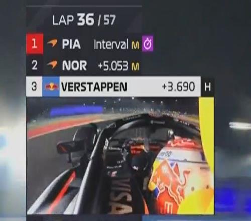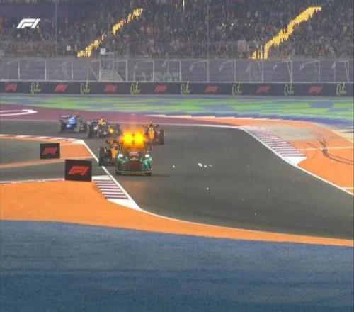 五盏红灯熄灭,卡塔尔大奖赛正式开始!皮亚斯特里的起步相当不错,脏侧起步的诺里斯被维斯塔潘在起步后超越,进入一号弯时已经让维斯塔潘拿到了第二的位置。