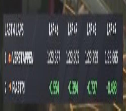 第48圈比赛仅剩9圈,皮亚斯特里还差身前维斯塔潘13秒!虽然前者每圈能够追近0.5秒左右,但奈何圈数不够啊!