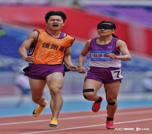 女子200米T11级决赛上,广西运动员刘翠青夺得第一名。