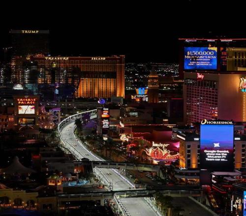 这是唯一的夜间赛道,而且还是难度升级狭窄的城市道路,这个拉斯维加斯的夜晚,是赛车世界最不讲道理的舞台。