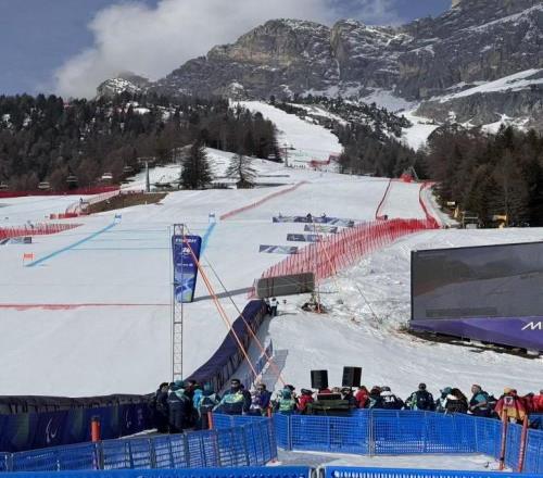 奥林匹亚-德拉-托法纳(Olympia delle Tofane)赛道被誉为“速度与肾上腺素女王”。赛道全长2560米,垂直落差高达750米。选手比赛时从一段坡度达到64%的陡坡起跳,选手将在此达到全程的最高时速,随后迎来“杜卡·达奥斯塔跳台”(Duca d’Aosta jump)。进入赛道中段的标志性弯道“大弯道”(Gran Curvone),开启充满挑战的核心赛段,并接连迎来技术难度极高的“斯卡尔帕东”(Scarpadon)区段。
