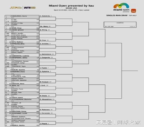 而WTA1000迈阿密站的单打签表已经出炉,前八大种子的对位:上半区,萨巴伦卡--鲍里妮、莱巴金娜--佩古拉;下半区,阿尼西莫娃--高芙、米拉-安德列娃--斯瓦泰克。上届八强、中国一姐郑钦文位列第23号种子,首轮轮空,次轮将对阵美国人布雷迪或斯蒂芬斯,第三轮的潜在对手是美国名将凯斯或刚刚赢过她的克罗地亚人鲁季奇,第四轮将对位世界第一萨巴伦卡,签表很硬,保分压力很大。
