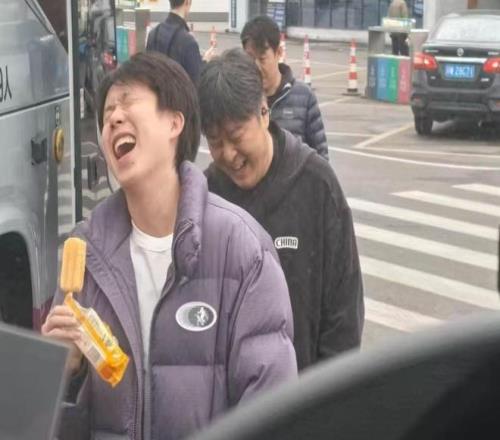 对于王楚钦来说,处在调整期输球并不是坏事,正好可以发现问题并解决问题。王楚钦穿了羽绒服,他一边吃雪糕一边走路。主管教练孙逊跟着王楚钦。不知道说到什么话题了,王楚钦大笑起来。