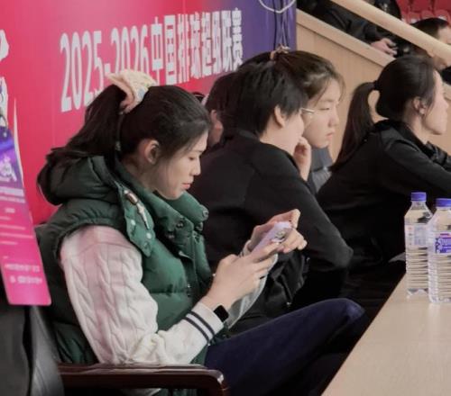 李盈莹坐在观众席见证了天津女排在半决赛首回合以3比0击败江苏女排。这个赛季,李盈莹和王媛媛都没有为天津女...