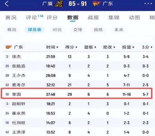 此时的广东队本就内忧外患——萨林杰大腿肌群撕裂长期缺席,麦考尔脚踝扭伤反复发作,张皓嘉膝盖炎症未愈,多人带伤硬撑。胡明轩伤情再升级,无异于在绷紧的钢丝上又加一道重压,后场组织与攻坚火力双双告急。