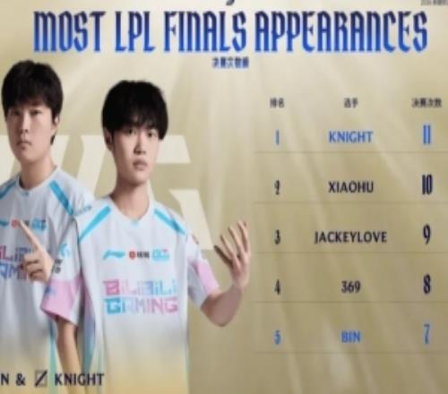体育资讯3月8日称 官方数据:Knight出道至今已经十一次打入决赛,超过小虎的十次...
